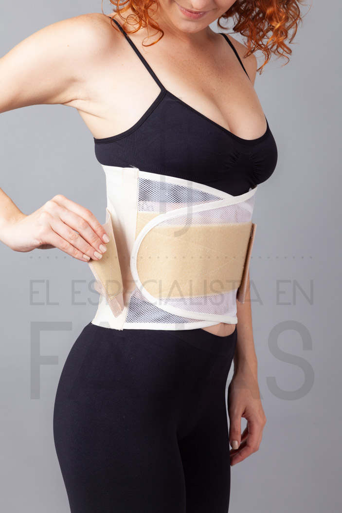 "Faja lumbar ballenada se utiliza en patologías como hernia de disco, desplazamiento, pinzamiento etc. de la zona sacro lumbar. El frente es ventilado y posee una amplia regulación tanto del contorno de la faja como de la compresión que brinda el tensor, no comprime el abdomen y es muy fácil de cerrar. Altura 24 cm en la parte posterior, 4 ballenas de metal, tensor y cierra con abrojo."La imagen es ilustrativa y puede cambiar el tono del producto.