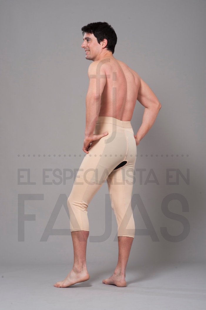 "calza para operaciones de piernas, dermolipectomia, lipoaspiración. Toma desde de la cintura hasta debajo de las rodillas, tiene refuerzo en la cara interna y externa de la pierna, y apertura genital."La imagen es ilustrativa y puede cambiar el tono del producto.