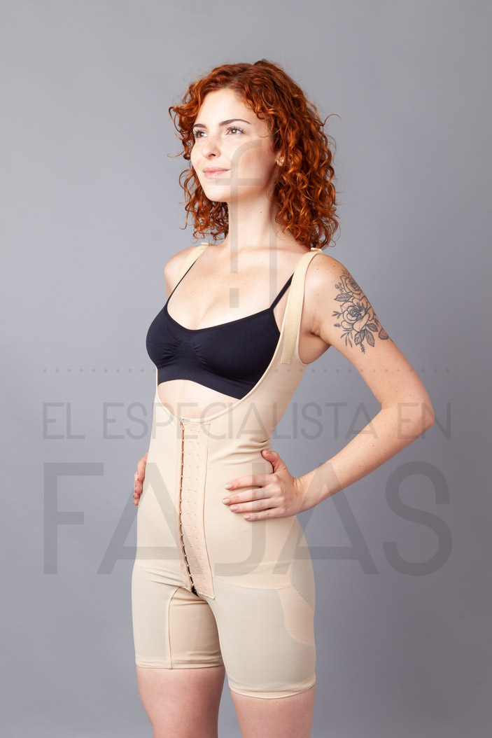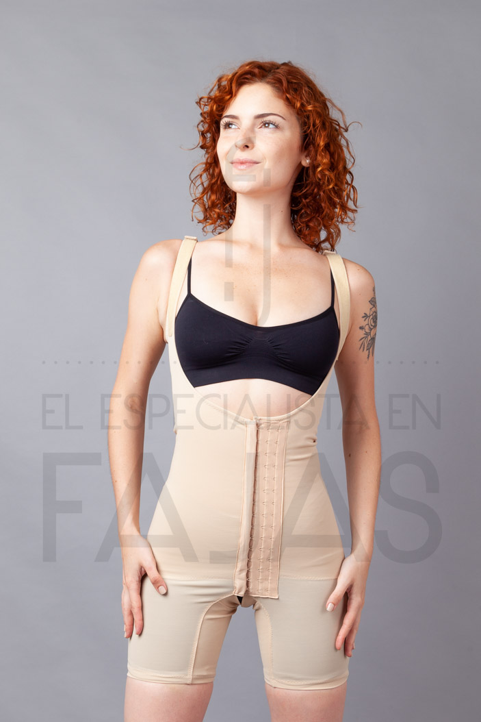 "Faja para lipoaspiracion de abdomen, espalda y flancos. Toma desde abajo del busto hasta la midad del muslo , regulacion al frente y en el brazo , espalda alta y apertura genital."La imagen es ilustrativa y puede cambiar el tono del producto.
