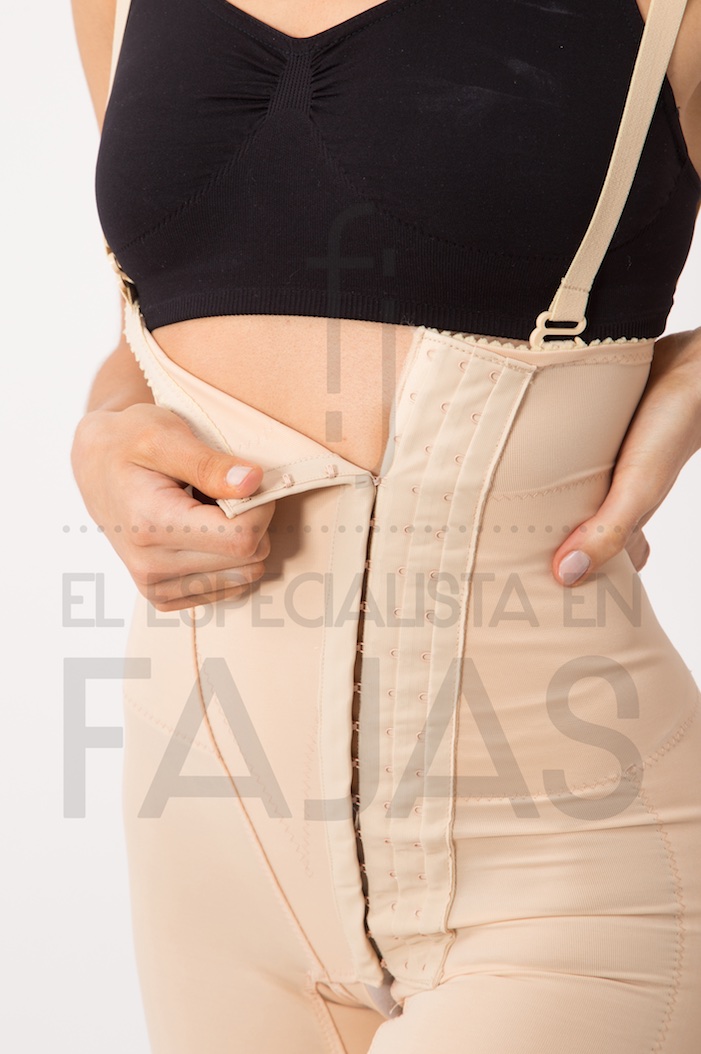 "Faja para lipoaspiración, dermolipectomia o tratamientos estéticos de abdomen y piernas Toma desde abajo del busto hasta arriba de las rodillas, cierra con ganchitos 3 posiciones de regulación, está abierta en la zona genital, breteles."La imagen es ilustrativa y puede cambiar el tono del producto.